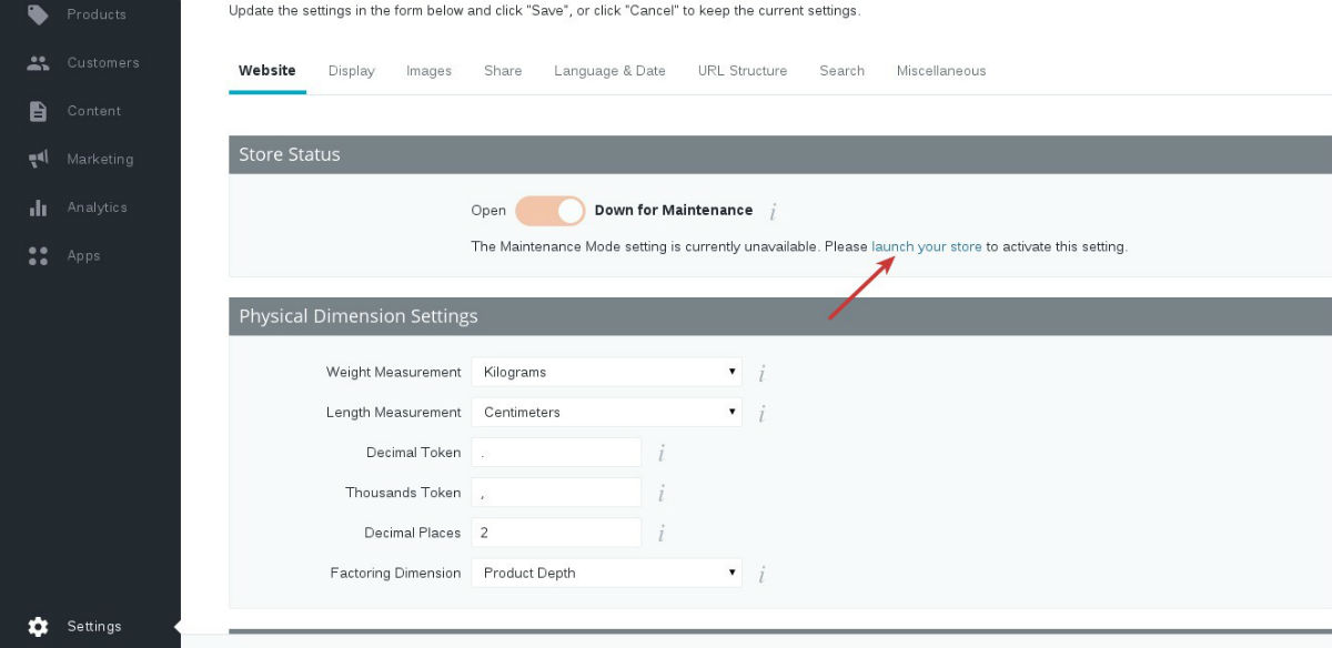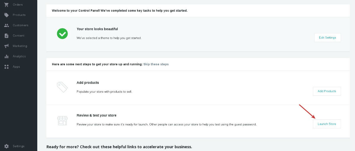 3. Press launch your store in the Store Status tab